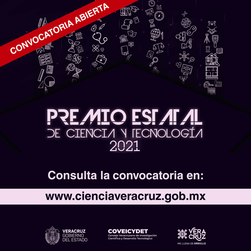 *Xalapa, Ver., 24 de febrero de 2021.-* Con el objetivo de reconocer el aporte de quienes se dedican a la investigación, el Consejo Veracruzano de Investigación Científica y Desarrollo Tecnológico (COVEICYDET) abrió la convocatoria para el Premio Estatal de Ciencia y Tecnología 2021, la cual estará vigente hasta el 22 de marzo.