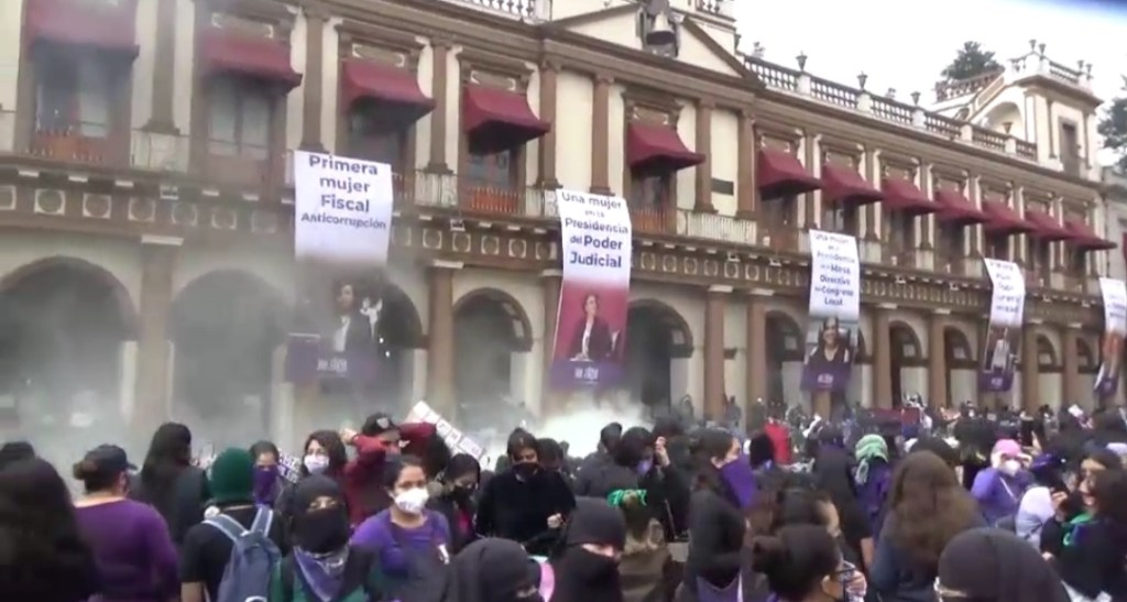 Colectivos feministas identificados como las «Morras Organizadas de Xalapa» y «Marea Verde» marcharon por las principales calles y avenidas de la capital de Veracruz en el marco del día internacional de la Mujer causando destrozos armadas con martillos y hasta machetes.