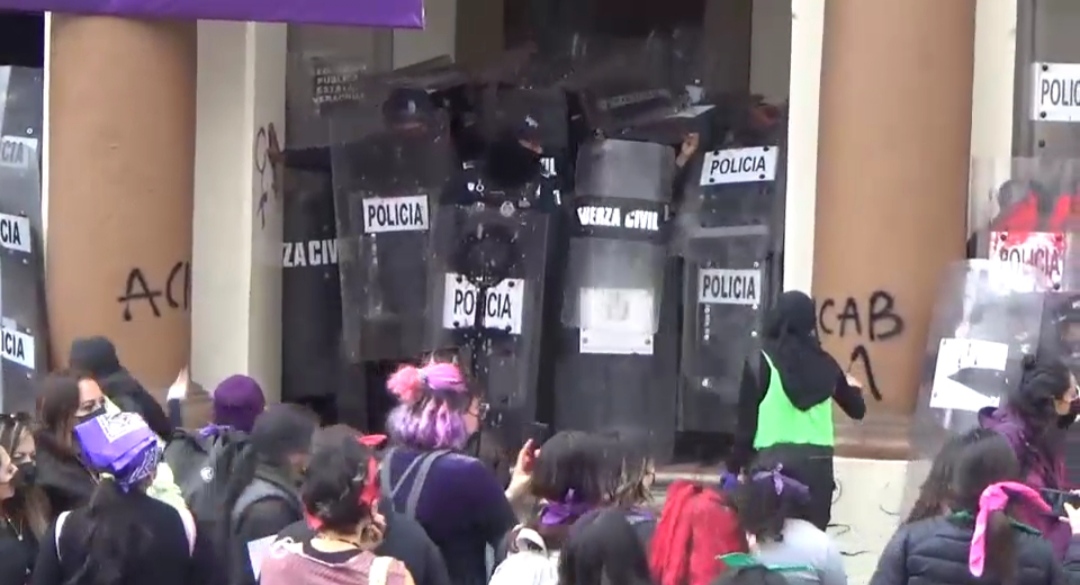 El Gobierno de Veracruz desplegó a unos 500 elementos de la Policía Estatal para contener la manifestación, en coordinación con policías municipales e integrantes de la Fuerza Civil se evitó que las manifestantes ingresaran a los edificios públicos para causar destrozos.