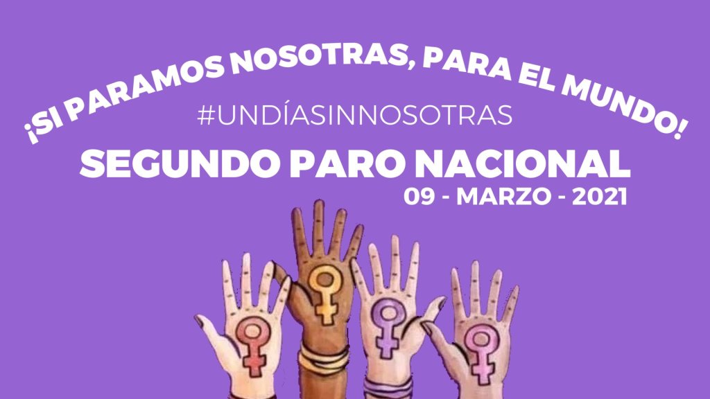 En el marco del Día Internacional de la Mujer, diversos grupos feministas están convocando al paro nacional de mujeres «Un Día sin Nosotras», a efectuarse el 9 de marzo, esto con la finalidad de que se note la importancia que tiene este sector en la sociedad, de su contribución a la economía del país, pero sobretodo, para que los gobiernos atiendan sus necesidades en materia de seguridad.