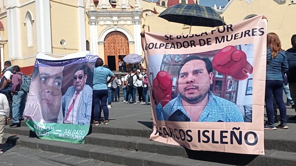 Mediante pancartas con la leyenda de “agresores de mujeres, Marcos Isleño=Salgado Macedonio, y “se busca por golpeador de mujeres”, un grupo de mujeres se manifestó en Plaza Lerdo, frente a Palacio de Gobierno en Xalapa, en contra de la candidatura de Marcos Isleño a la alcaldía de Medellín de Bravo por la alianza Morena-Verde.
