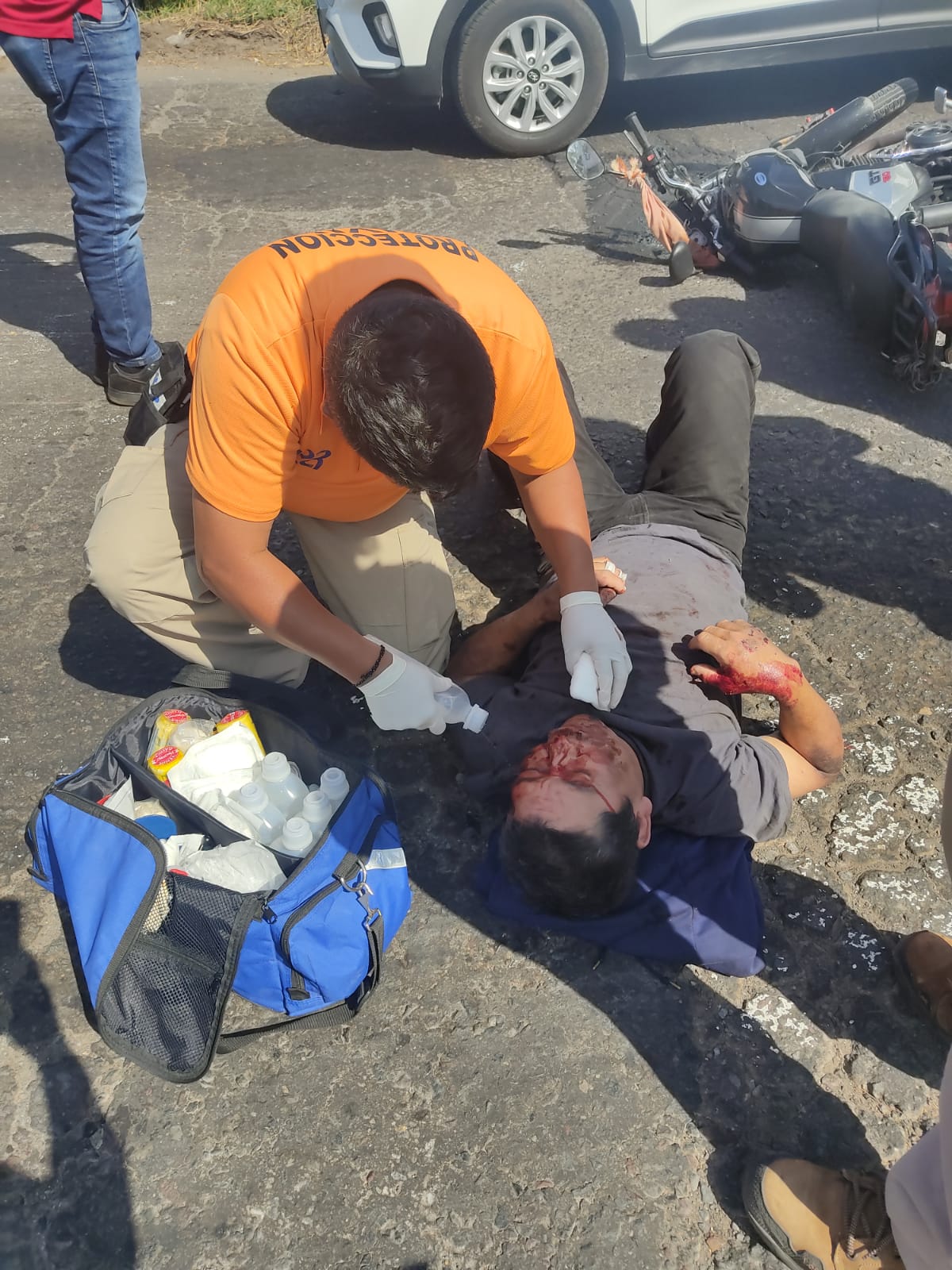 Un hombre de 52 años de edad sufrió diversas lesiones tras derraparse en su motocicleta en la carretera Veracruz- El Tejar.