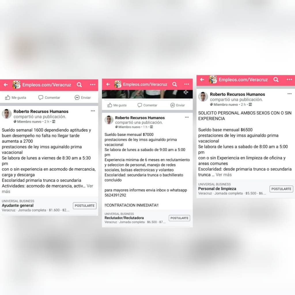 En periódicos, sitios de Internet y en Facebook, es común ver publicadas diversas vacantes de trabajo, la mayoría de ellas con información similar, ofertan puestos variados, pagan buen sueldo y no es necesario contar con experiencia laboral.
