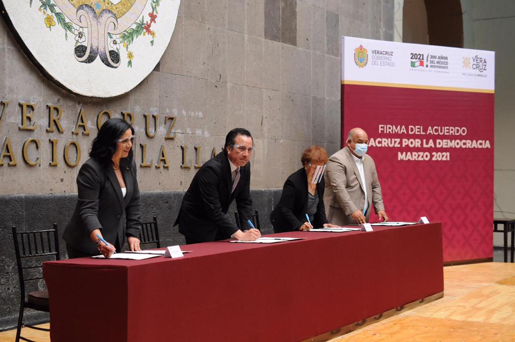 Por parte del Poder Ejecutivo, firmó el Acuerdo Veracruz por la Democracia el Gobernador Constitucional del Estado, ingeniero Cuitláhuac García Jiménez y por el lado del Poder Judicial, la Magistrada Presidenta del H. Tribunal Superior de Justicia y Consejo de la Judicatura del Estado, Isabel Inés Romero Cruz.