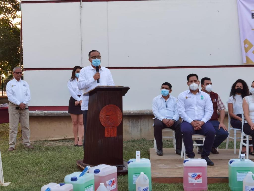 El titular de la SEMSYS, Jorge Miguel Uscanga Villalba, acompañado por los directores de diferentes subsistemas, de los Institutos Tecnológicos Superiores de Cosamaloapan, Juan Rodríguez Clara, Acayucan, Alvarado y Tierra Blanca, y de la delegada de la SEV en Cosamaloapan, Lizeth Magdalena Amador Torres, destacó que la entrega es parte de la labor encomendada por el gobernador Cuitláhuac García Jiménez y del secretario de Educación, Zenyazen Escobar García, para que las escuelas cuenten con las medidas sanitarias adecuadas al momento de retornar a las aulas.