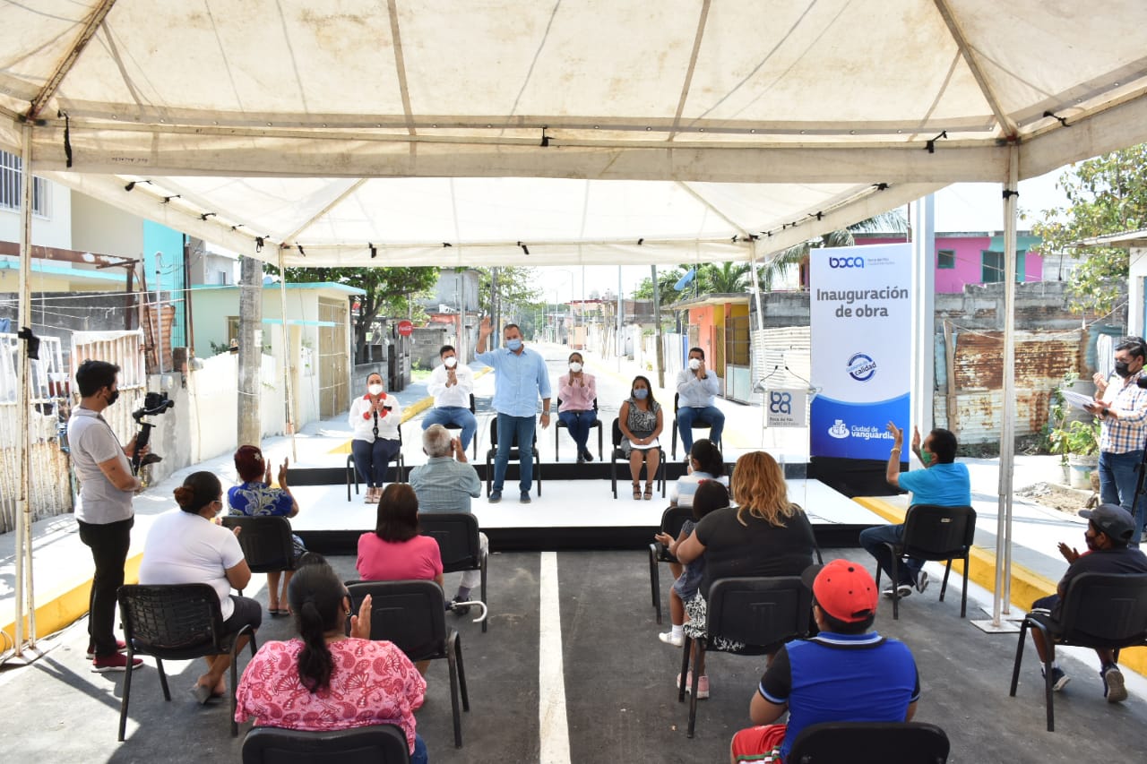*Inauguró la calle Mangle en la col. Miguel Alemán, donde se construyó desde la carpeta asfáltica hasta el drenaje y alumbrado.