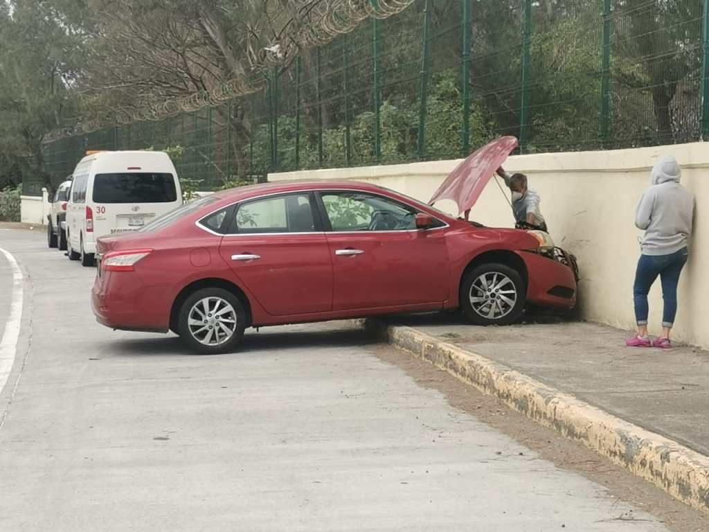 El exceso de velocidad y el pavimento mojado por la llovizna que se registró esta mañana, provocaron que un automóvil marca Sentra derrapara y se estrellara en la barda de la Administración Portuaria.