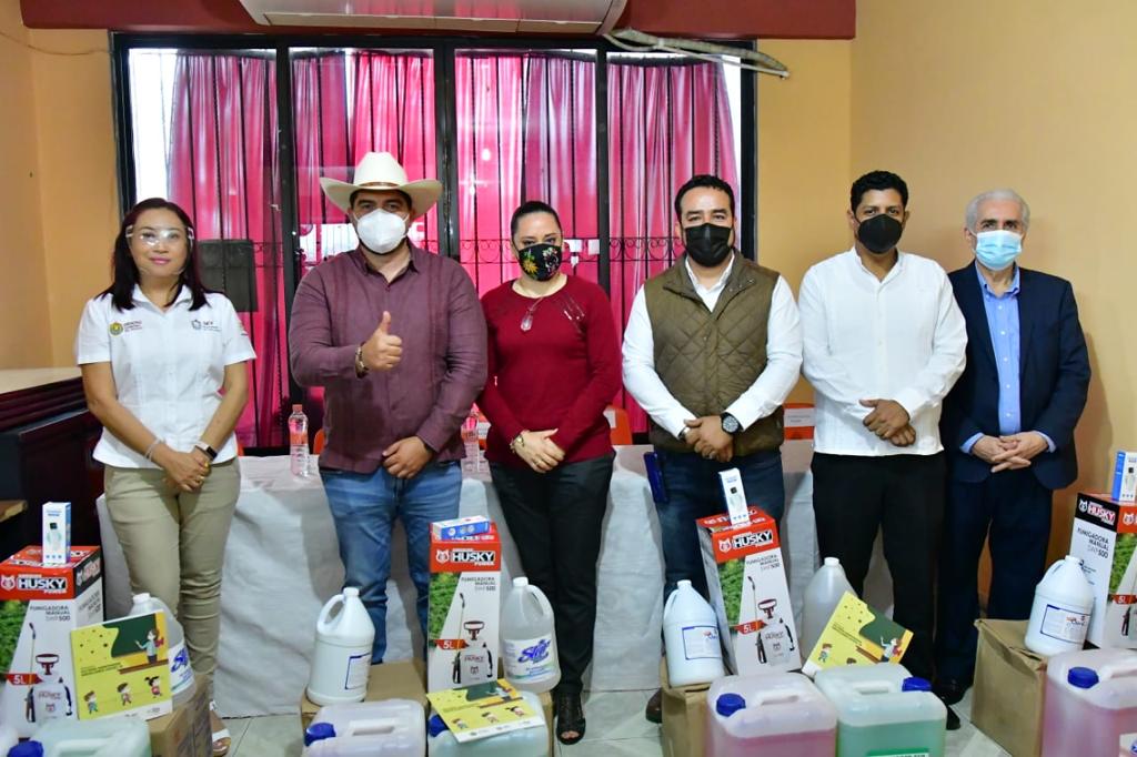 Durante la distribución de apoyos, consistentes en gel antibacterial, cloro, jabón líquido, desinfectante, aspersor de cinco litros, termómetro y manual sanitario contra COVID-19, el servidor público reconoció la labor del personal docente, administrativo, de apoyo y de los padres de familia a un año de iniciada la pandemia.