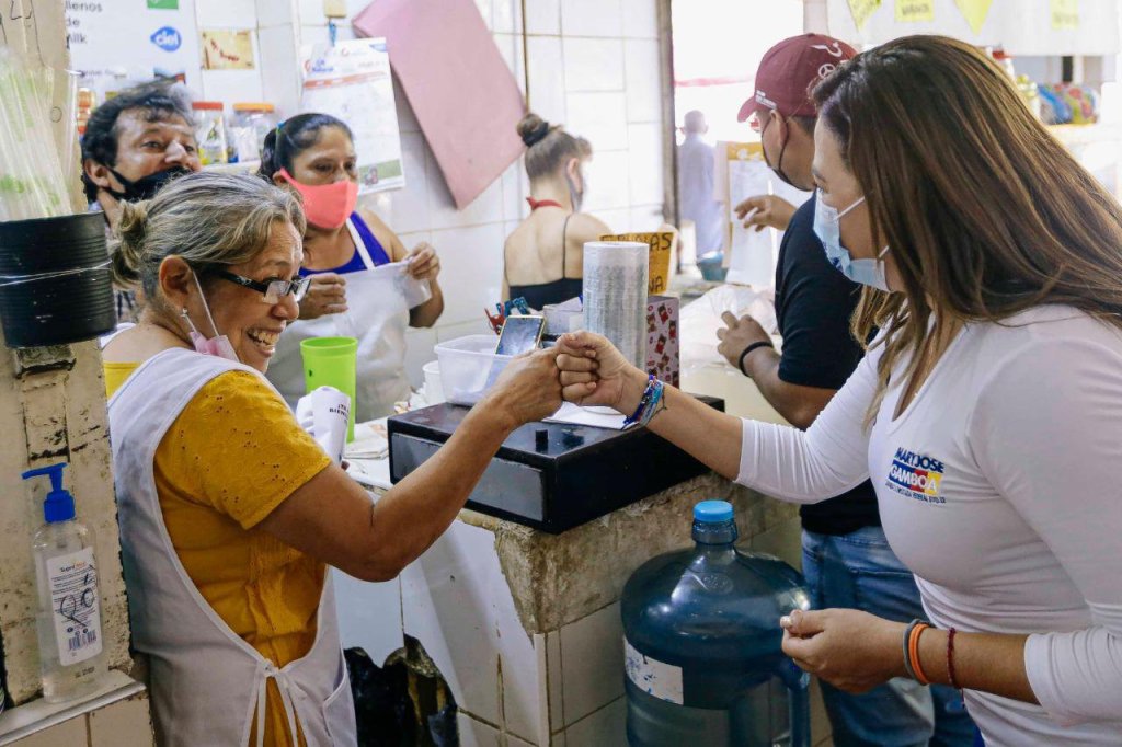 En su recorrido por el mercado Zaragoza y la colonia del mismo nombre, Maryjose Gamboa pidió a la gente apoyar a los comerciantes locales. “Los invito a que vengan a desayunar al mercado Zaragoza, la verdad es que los locatarios, como tanta gente, a raíz de la pandemia la han pasado mal”.