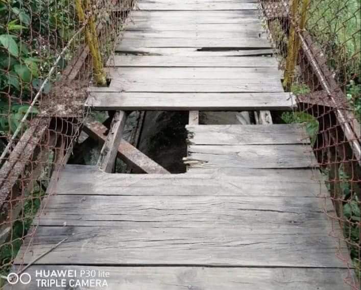 Los hechos ocurrieron esta tarde de domingo cuando, alrededor de las seis de la tarde se dio aviso a las corporaciones de emergencia y, de acuerdo a versiones preliminares, el puente colgante se rompió parcialmente en varios de sus tablones por donde cruzan el río los paseantes.