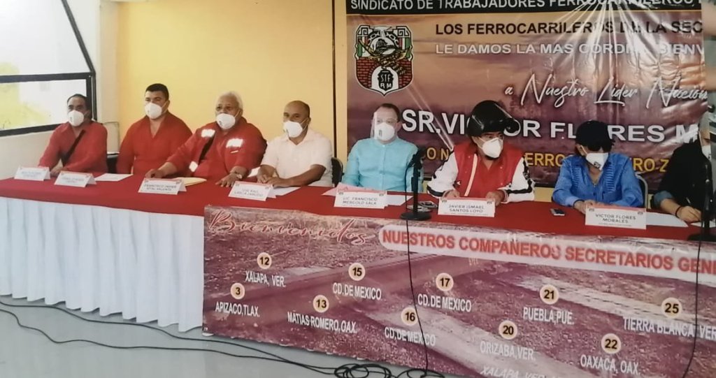 Ante representantes de todas las áreas del sistema ferroviario nacional reunidos en el centro deportivo ferrocarrilero bajo estrictas medidas de seguridad sanitaria ante la pandemia del Covid-19, donde además, los equipos de futbol de las secciones 12 y 28 con sede en Xalapa y Veracruz Puerto se enfrentaran en un partido amistoso, los dirigentes de cada una de las 39 secciones del Sindicato de Trabajadores Ferrocarrileros de la República Mexicana dejaron en claro el respaldo a la dirigencia nacional que encabeza Víctor Flores Morales quien habría aprovechado el Congreso para dar a conocer los recientes incrementos salariales y a prestaciones obtenidos tras las negociaciones con las empresas concesionarias del ferrocarril mexicano, Alshtom y Ferrosur.