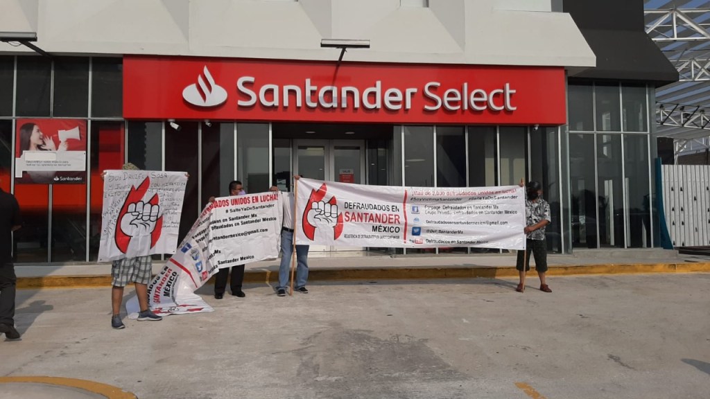 Este jueves, decenas de ciudadanos protestaron de forma pacífica a las afueras de la sucursal bancaria Santander, ubicada en el bulevar Ruiz Cortines del municipio de Boca del