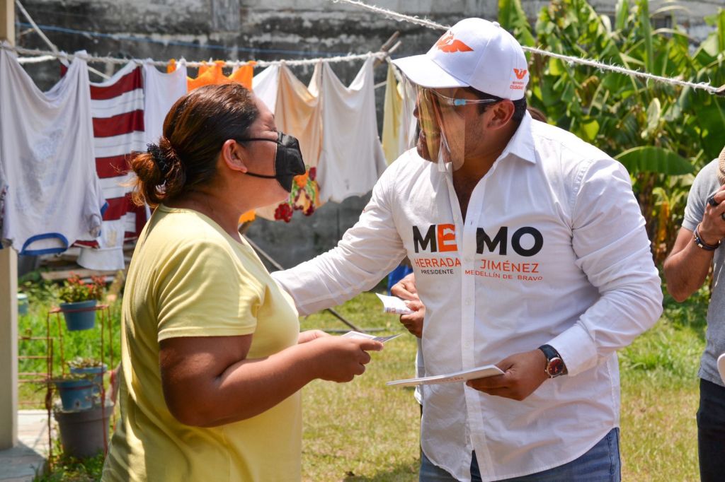 Medellín de Bravo, Ver.- Alumbrado Público, drenaje, calles, servicios de calidad en general, fueron solo algunas de las necesidades de la ciudadanía que escuchó Memo Herrada Jiménez, durante su recorrido en colonias de Paso del Toro.