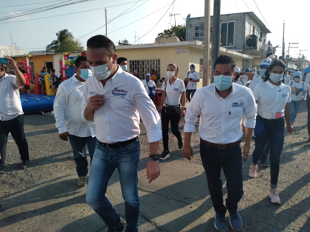 El candidato a la diputación local del distrito XVI, Jaime de la Garza recorrió este domingo la cabecera municipal con Juan Manuel Unanue aspirante a la alcaldía por elmunicipio de Boca del Río.