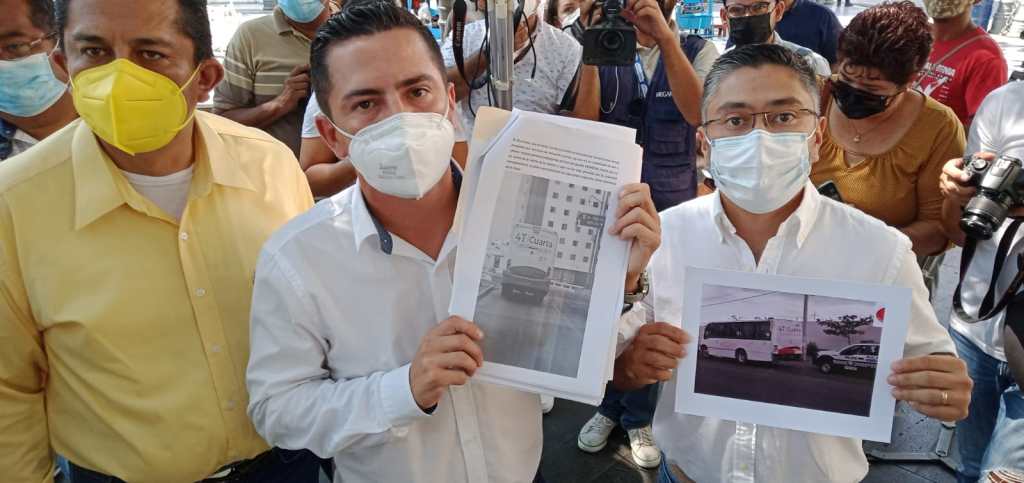 “Intentamos presentar ante la fiscalía de delitos electorales, una denuncia en contra del gobernador del estado, así como del secretario de seguridad pública y los directores del transporte público, tránsito y seguridad vial, por uso de recursos públicos, para favorecer a Morena, como es el uso de camiones y taxis, para la propaganda de la cuarta deformación que es visible para todos los ciudadanos de esta ciudad”.