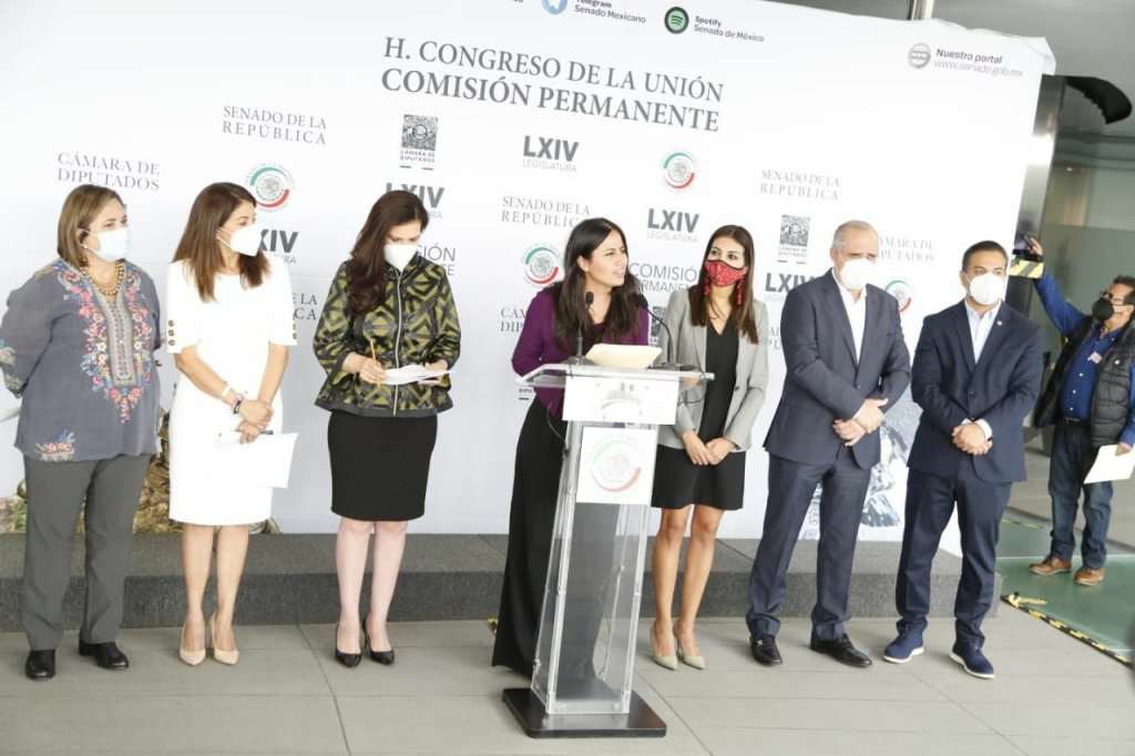 En la conferencia de prensa en el Senado de la República estuvieron presentes los senadores Julen Rementería del Puerto, Damián Zepeda Vidales, Kenia López Rabadán, Bertha Xochitl Gálvez Ruiz y las diputadas federales Josefina Salazar Baéz y Alejandra García Morlan.