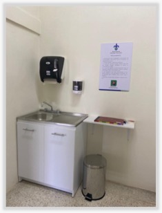 La sala cuenta con elementos y normas sanitarias e higiénicas para cumplir su objetivo como son un espacio cómodo, bote de basura, lavaderos, y diversos utensilios como termómetros, además de un filtro sanitario para el covid-19.