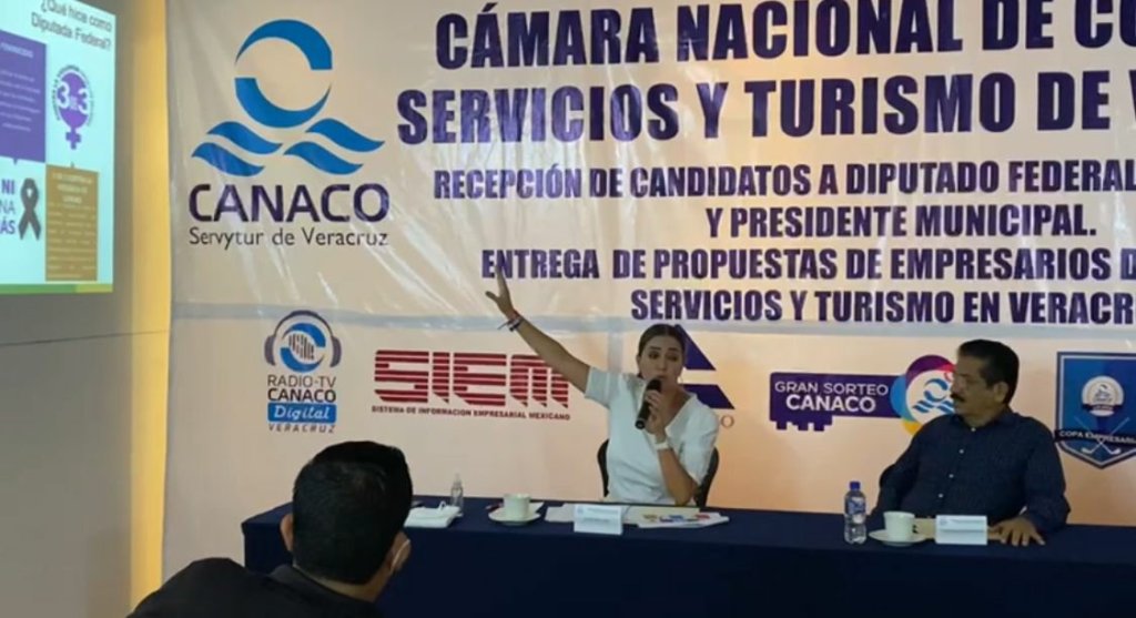La candidata del PRI a la diputación local, Anilú Ingram, se reunió con empresarios de la Cámara Nacional de Comercio en Veracruz, en donde refrendó su compromiso para reactivar la economía del estado.