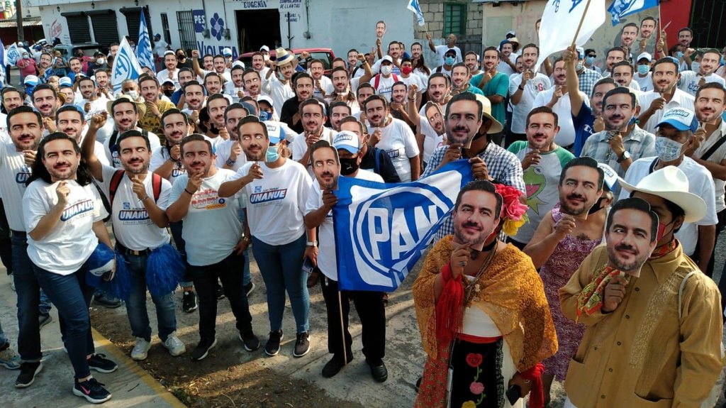 Con máscaras del rostro de Miguel Ángel Yunes Márquez, las personas se desplazaron en grandes grupos por las calles de las colonias exclamando “Todos somos Miguel” para manifestarle su apoyo total y con la seguridad de que en unos días volverá a continuar con su campaña.
