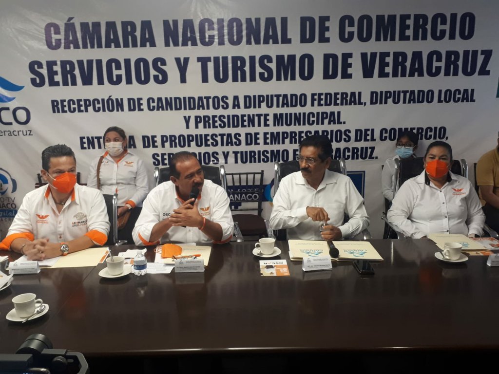 El candidato de Movimiento Ciudadano a la alcaldía de Veracruz, Oscar Lara, se reunió con empresarios de la Cámara Nacional de Comercio a quienes escuchó y presentó sus propuestas de campaña.