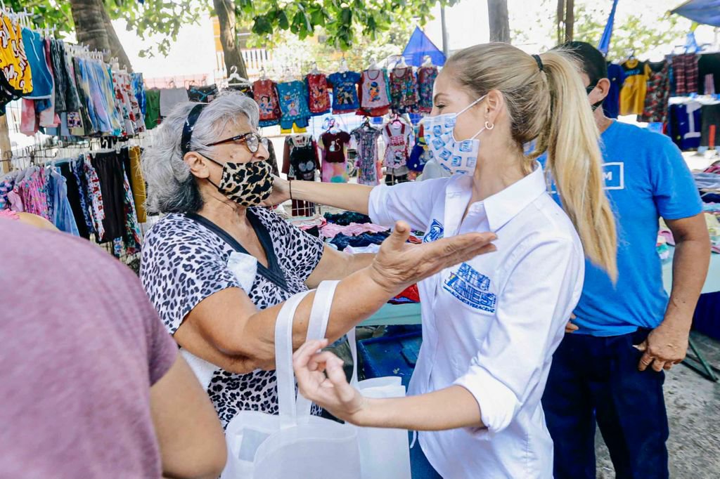 La candidata a la Presidencia Municipal de Veracruz de la alianza «Veracruz va» PAN-PRI-PRD, Paty Lobeira, realizó recorrido de campaña este día en el Tianguis de Los Pinos.