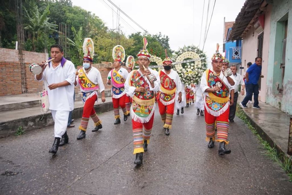 Las autoridades municipales y los viejos caporales del ritual, honran a los voladores que fallecieron preservando la cultura papanteca.