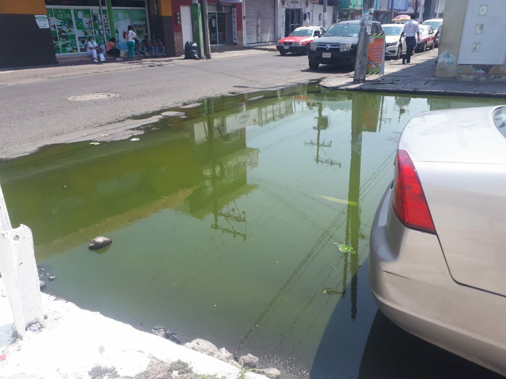 Desde hace varios días, el agua de lluvia se ha quedado estancada en la calle Paso y Troncoso esquina Callejón san Sebastián, en pleno centro de Veracruz, lo que ha generado molestias a las personas que viven y transitan por el lugar.