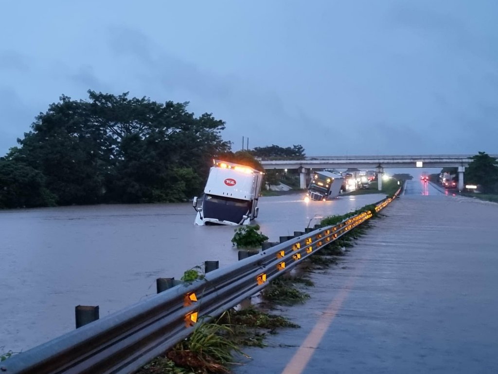 En dirección hacia el sur, el incremento del agua es notable e incluso algunos vehículos quedaron atrapados, situación que fue documentada en fotografías y videos.
