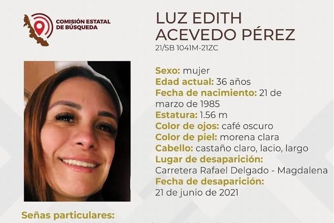 “Una vez más me dirijo a solicitar el apoyo del Gobernador, ingeniero Cuitláhuac García, para localizar a mi hija Luz Edith Acevedo Pérez, ya que han transcurrido 18 días y no tengo noticias de ella. Me dirijo a usted, con el corazón en la mano, como madres, hijas, abuelas, padres, me apoyen a difundir este video”, mencionó.