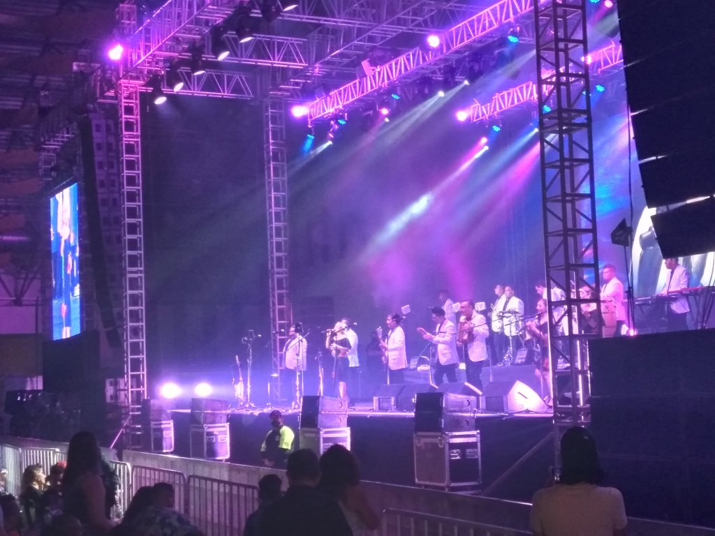 Pasadas las 9 de la noche de este sábado, los Ángeles Azules arribaron al escenario del WTC en Boca del Río para dar inicio al concierto que puso a bailar a todo el público asistente con su música sonidera.