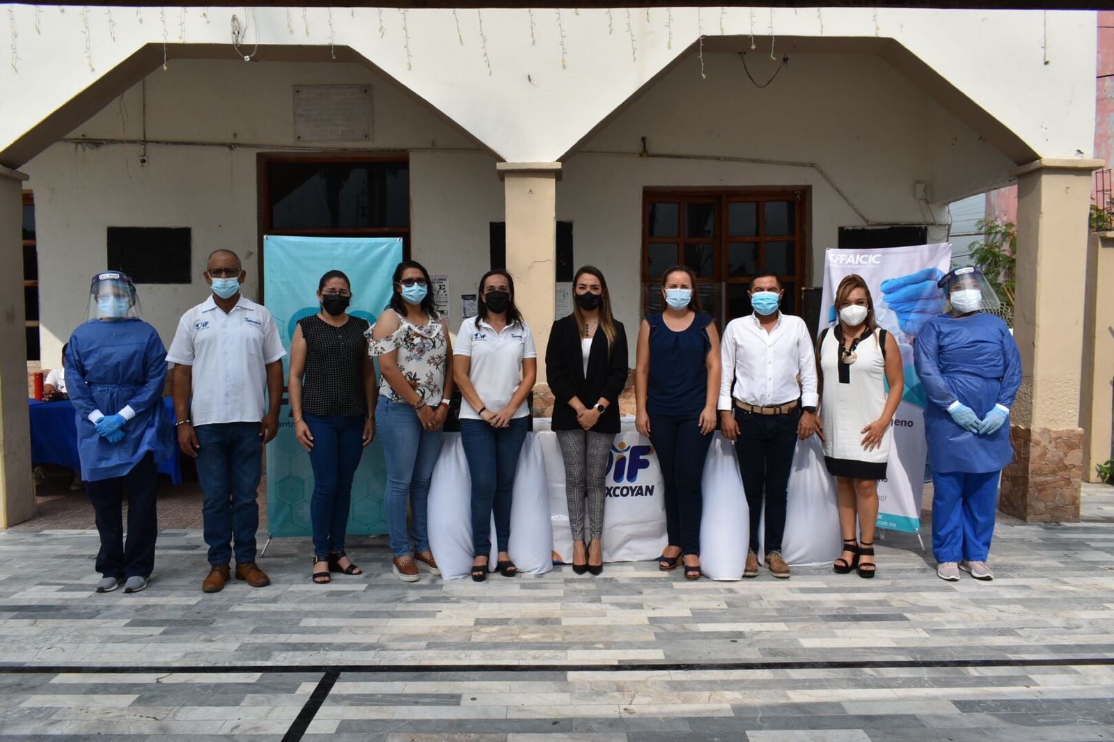 Así como, la directora general de FAICIC, Sharzy Molina, Gabriel Ruiz y Jorge Ramos que fueron testigos de la entrega del material de pruebas Covid-19 y kits gratuitos a la ciudadanía de Piedras Negras, Veracruz.