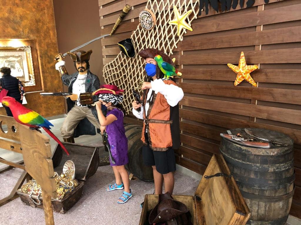 Uno de los espacios más apreciados por los visitantes es en el que te permiten interactuar y poder ser parte del momento ,es el caso del nuevo museo del Pirata donde con diferentes artículos como espadas, parches, sombrero y por supuesto el perico;te puedes tomar la fotografía.
