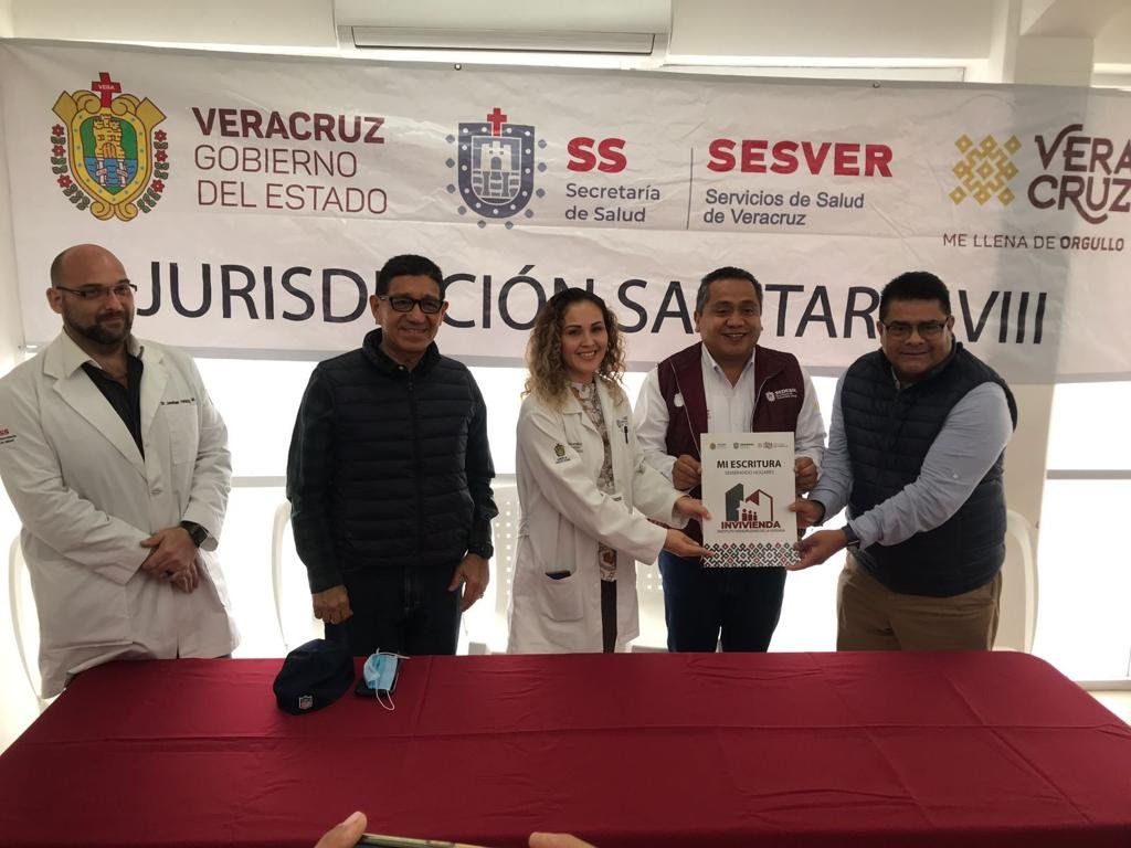Azael Flores Castro, gerente general del Instituto Veracruzano de la Vivienda, dio entrega a la Jurisdicción Sanitaria número 8 de las escrituras para, de ahora en adelante se le puedan dotar de todos los aditamentos necesarios para brindar el apoyo a la ciudadanía.