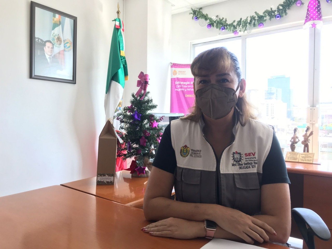 Durante el regreso a las actividades laborales en la Delegación Regional de la SEV Veracruz, se presentó un caso positivo de covid-19 y se trata de una trabajadora del área de Control Escolar, para el cual se tomaron las medidas de protocolo de salud y resguardo de los compañeros y el área de la oficina, comentó la delegada regional de la SEV, Diana Santiago Huesca.