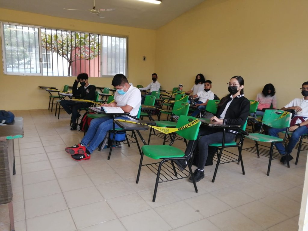 Si bien ya están algunos jovenes en las aulas, las clases serán escalonadas, pues se decidió dividir los grupos a la mitad y cada uno toma sus clases algunos días a la semana; a los que les toque estar a distancia, se llevan material de trabajo a sus hogares.