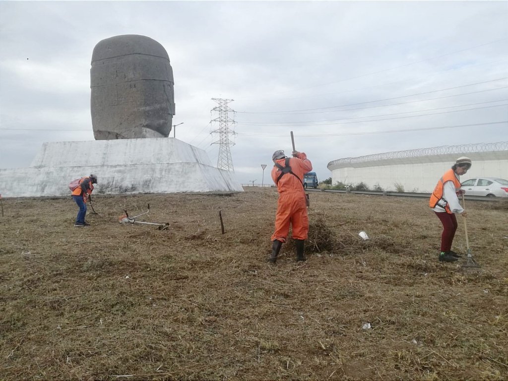 Veracruz, Ver.- A pesar de ser zona federal, la dirección de Parques y Jardínes del Ayuntamiento de Veracruz, dispuso de cuadrillas de limpieza para trabajar en el camellón y áreas verdes de la carretera Cabeza Olmeca – Tamaca.