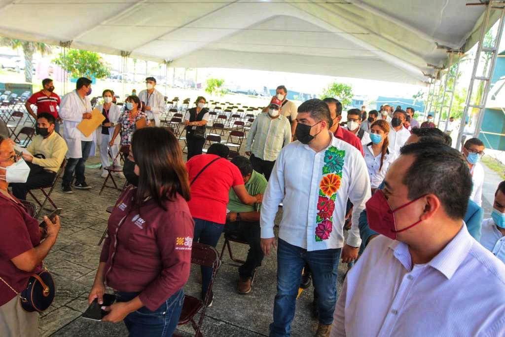 de vacunación contra el virus SARS-CoV-2, el titular de la Secretaría de Educación de Veracruz (SEV), Zenyazen Escobar García, reconoció el trabajo del personal de la Secretaría de Salud, el Instituto Mexicano del Seguro Social (IMSS), la Secretaría de Marina (SEMAR) y voluntarios, por su intensa colaboración en la segunda jornada de inmunización a las y los trabajadores del sector educativo.