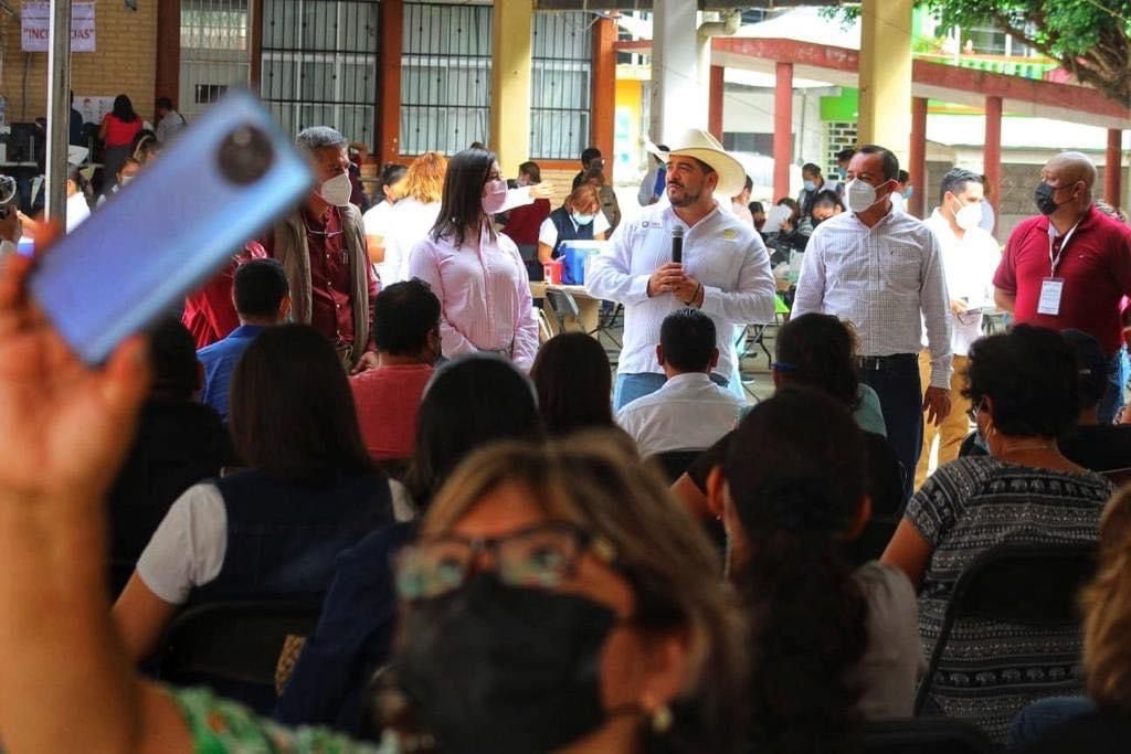 En este sentido, reconoció que asistir a la aplicación de la vacuna es un claro ejemplo del compromiso que tienen las y los docentes con los estudiantes y sus seres queridos, por ello la importancia de seguir impulsando el regreso a las clases presenciales como una necesidad social y en beneficio de las y los niños y jóvenes.