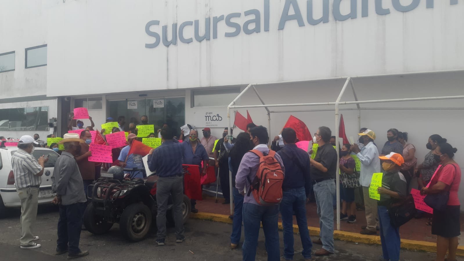 «Venimos al Grupo MAS para exigir que resuelva un problema de desabasto de agua en la zona de Matacocuite, ya tenemos rato pidiendo que se resuelve el problema, el año pasado en abril venimos y hubo un acuerdo con personal del Grupo MAS, con la directiva, dijeron que iban a empezar a contratar a la colonia y que iban a regularizar el agua, porque el agua no llega ahí a todas las casas, hay una cuestión de altura en la colonia, qué dijeron que iban a arreglar, la gente se contrato, la mitad de la colonia, ellos fueron, hicieron su censo, la gente empezó a pagar el agua y es la fecha que no sea regularizado», acusó la líder.