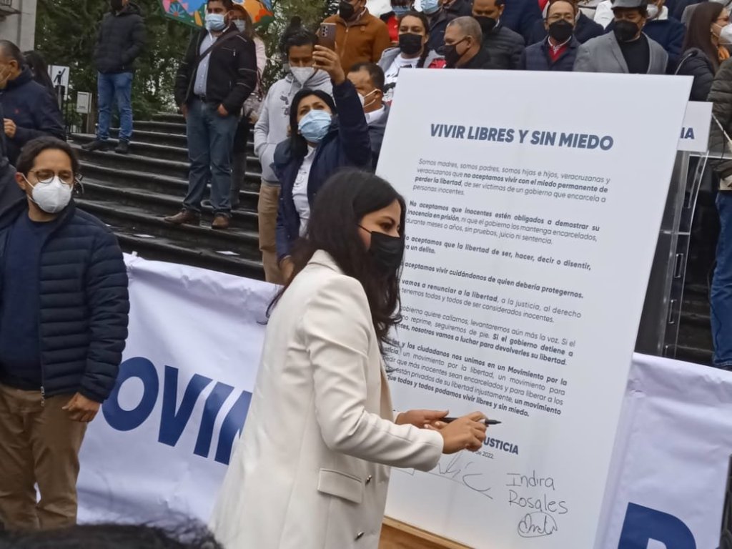 Xalapa, Ver.- La Senadora Indira Rosales San Román, firmó en Plaza Lerdo, el manifiesto del Movimiento por la Justicia; mismo qué suma a integrantes de diversos partidos políticos y de la sociedad civil, quiénes buscan erradicar el Injusto encarcelamiento de personas inocentes.