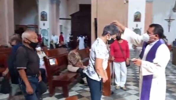 El religioso dijo que en esta ocasión la ceniza no se colocó en la frente, para com esto evitar contagios de Covid 19.