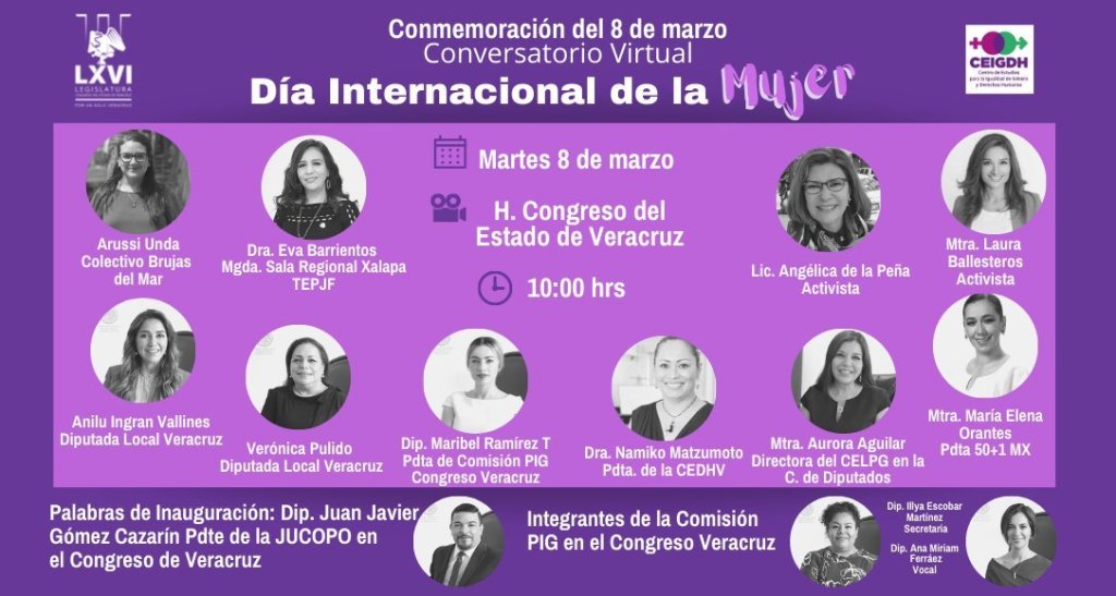 Veracruz, Ver.- Este martes 8 de marzo en conmemoración del «Día Internacional de la Mujer», el Congreso Local ha organizado un Conversatorio Virtual donde convergerán activistas y diputadas locales, a partir de las 10 de la mañana.
