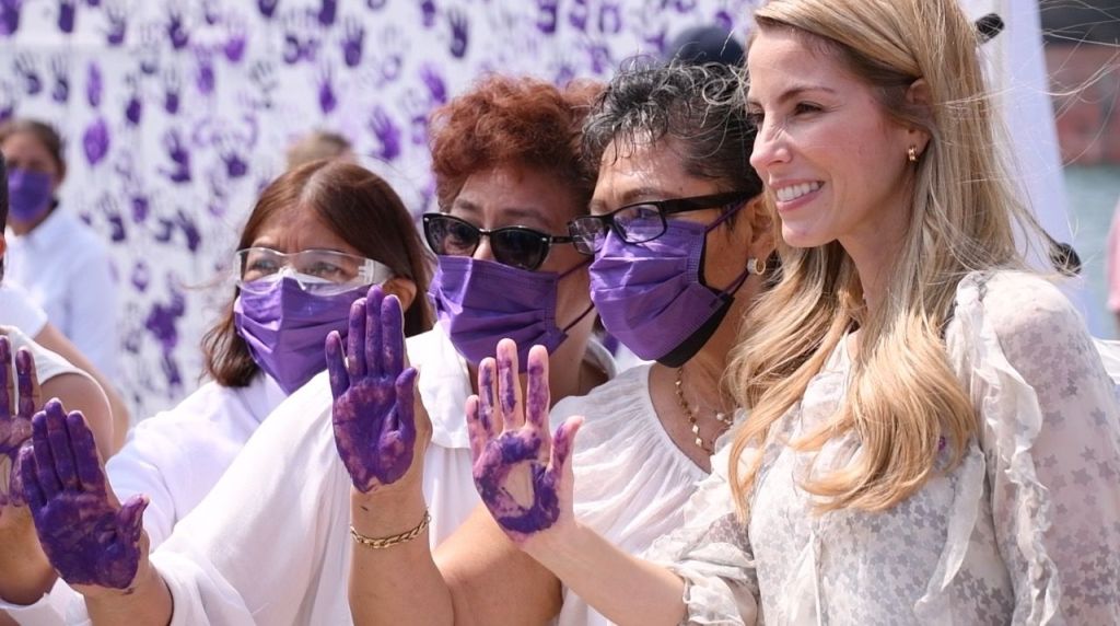 Al conmemorarse este 8 de marzo el Día Internacional de la Mujer, la alcaldesa Patricia Lobeira Rodríguez se reunió en la Macroplaza del Malecón con todas las mujeres que laboran en el Ayuntamiento para plasmar en un muro la mano derecha de color morado como reconocimiento al desempeño que realizan diariamente.