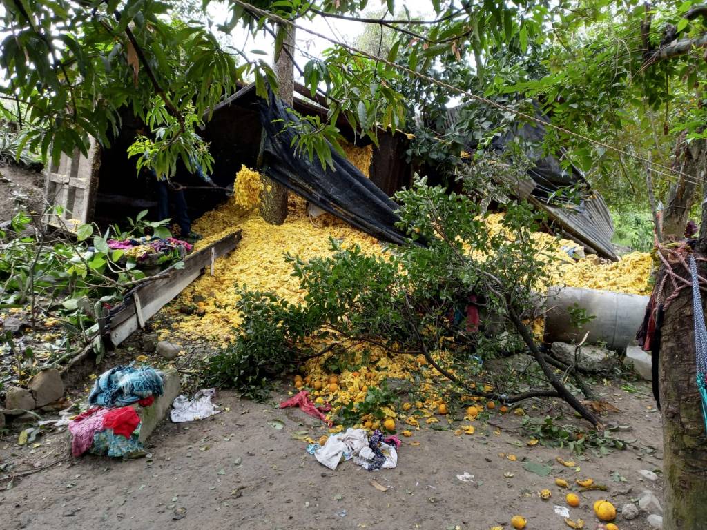 La mañana de este miércoles, un camión que circulaba por la carretera Federal México – Tuxpan, y en presunto exceso de velocidad, volcó sobre la autopista y se impactó con una vivienda, dejando caer su carga de gabazo de naranja; teniendo como saldo el lamentable accidente ya mencionado.