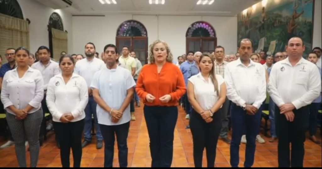 En compañía del cuerpo edilicio y de los trabajadores del Ayuntamiento, dentro de la Sala de Cabildo acusó qué, el Síndico no se puede un ufanar de ser la persona que «abre o cierra los apoyos de Gobierno del Estado».