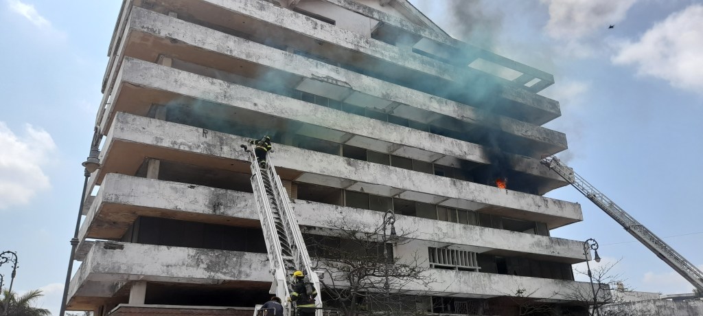 _-Las fuerzas de tarea de la conurbación participaron en un simulacro de incendio y rescate en un edificio de la zona centro y otro por fuga de gas con fuego_