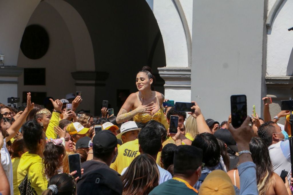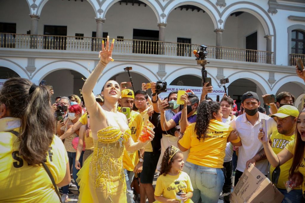 En el Zócalo de la ciudad se sintió un gran ambiente generado por un convoy, integrado por comparsa, batucada, familiares y amistades que apoyan a la mejor conocida como “Vale Queen”, quien utilizará el distintivo amarillo.
