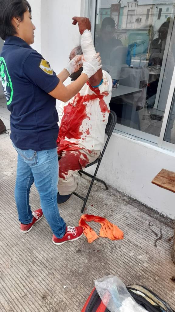 El ruletero identificado como, Rafael Marcial Martínez de 65 años y con domicilio en la Unidad Habitacional «El Coyol» del municipio de Veracruz, se presentó en la Central Emergencias, bañado en sangre.