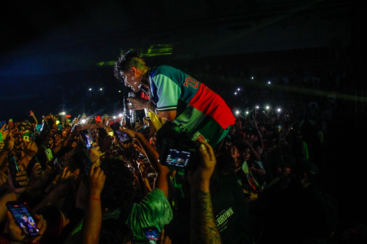 Al arrancar el concierto los ánimos llegaron al máximo para recibir al “Huracán”, el rapero salió al escenario y comenzó su gran concierto donde deleitó a todos sus fans con los éxitos que lo catapultaron como el cantante de trap más importante de México en la actualidad.