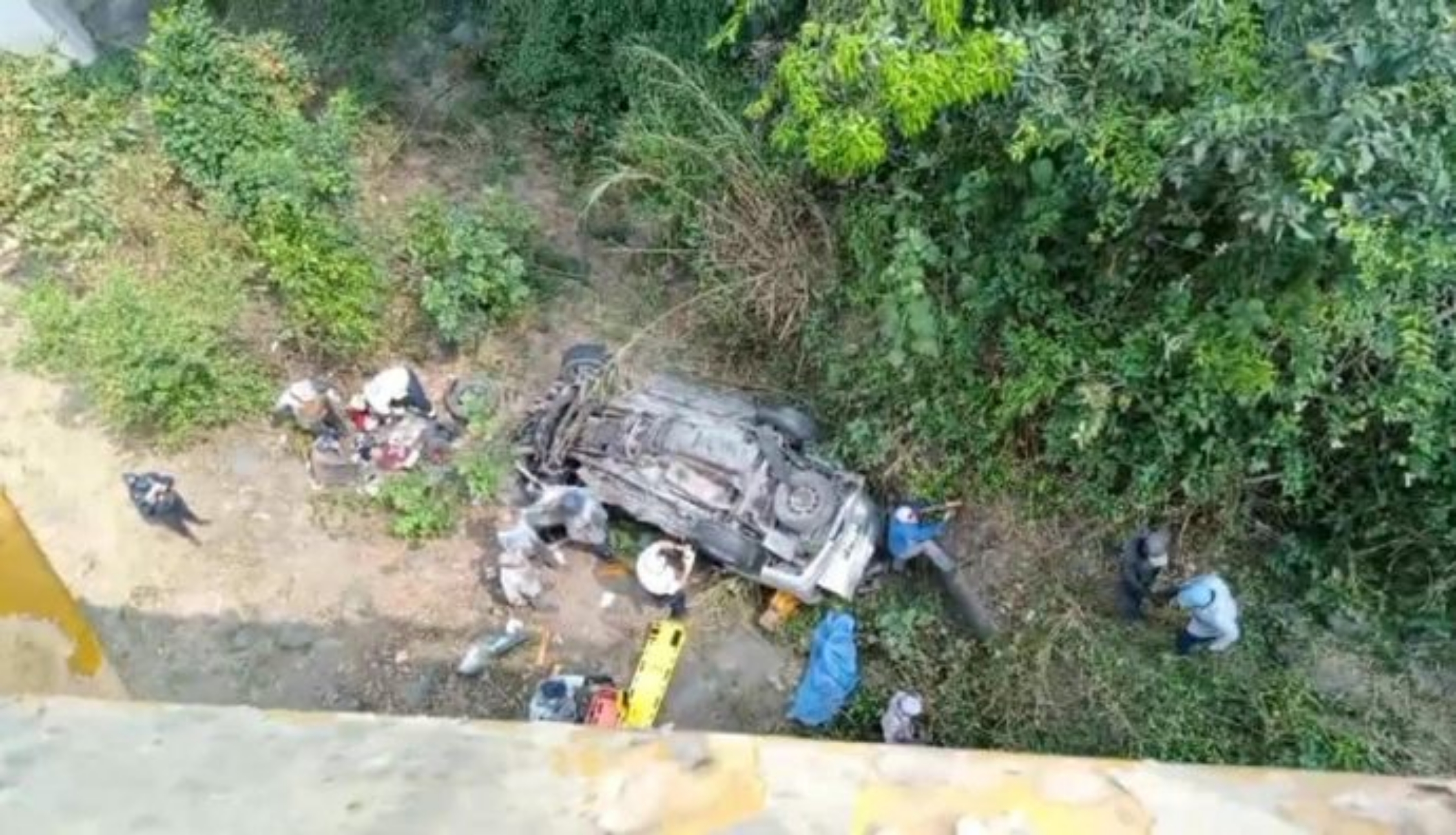 Fue durante la mañana de este miércoles que una camioneta tipo van en la que viajaban varias personas al parecer de origen centroamericano salió del camino cuando el conductor perdió el control de la unidad al reventársele un neumático, cayendo de un puente.